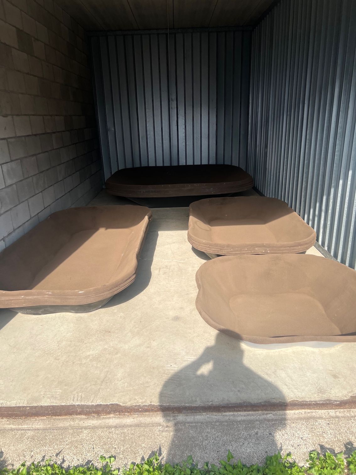 Made out of fiberglass, and then a natural dirt is rubbed into the pond to make them look natural.